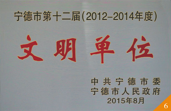 市交投集團榮獲寧德市第十二屆(2012-2014年度)文明單位稱號