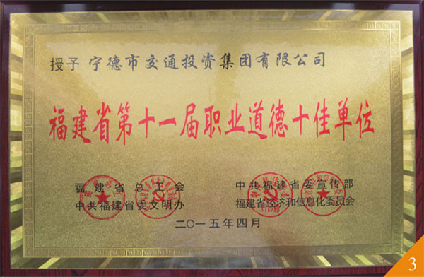 市交投集團榮獲福建省第十一屆職業(yè)道德十佳單位