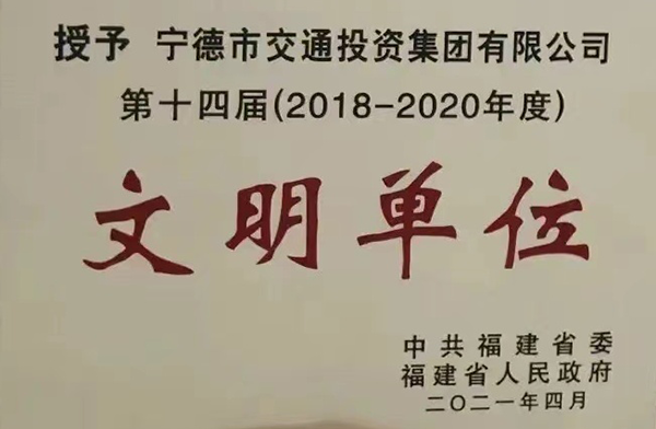 市交投集團榮獲福建省第十四屆文明單位榮譽