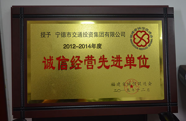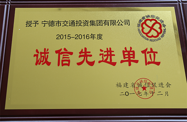 市交投集團被福建省誠信促進會授予2015-2016年度誠信先進單位