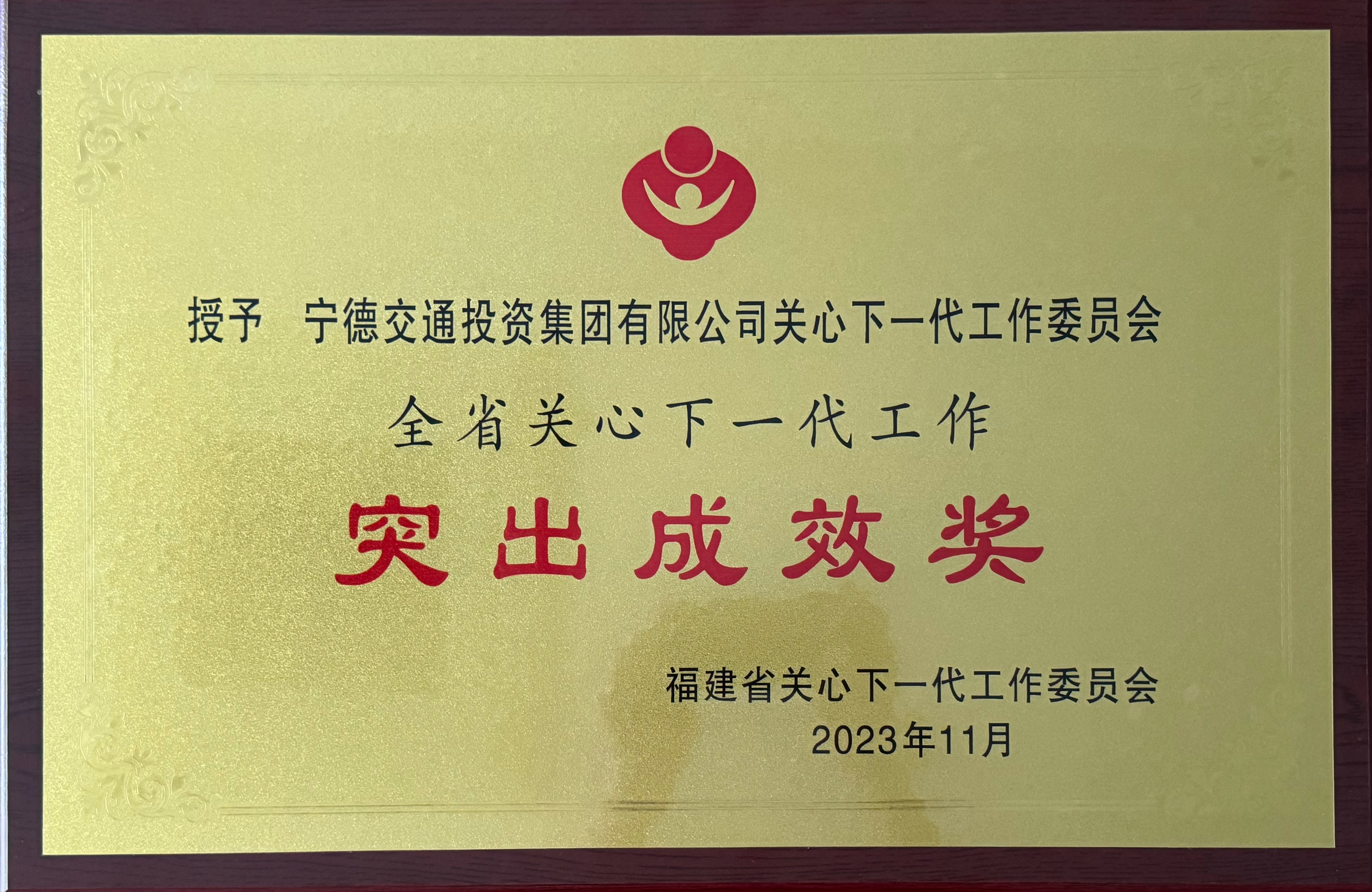 市交投集團關心下一代工作委員會被授予“全省關心下一代工作突出成效獎”